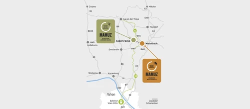 ÖBB: Mit der Schnellbahn S2 nach Mistelbach (Station Mistelbach Stadt). Folgen Sie den Wegweisern zum MAMUZ Museum Mistelbach.